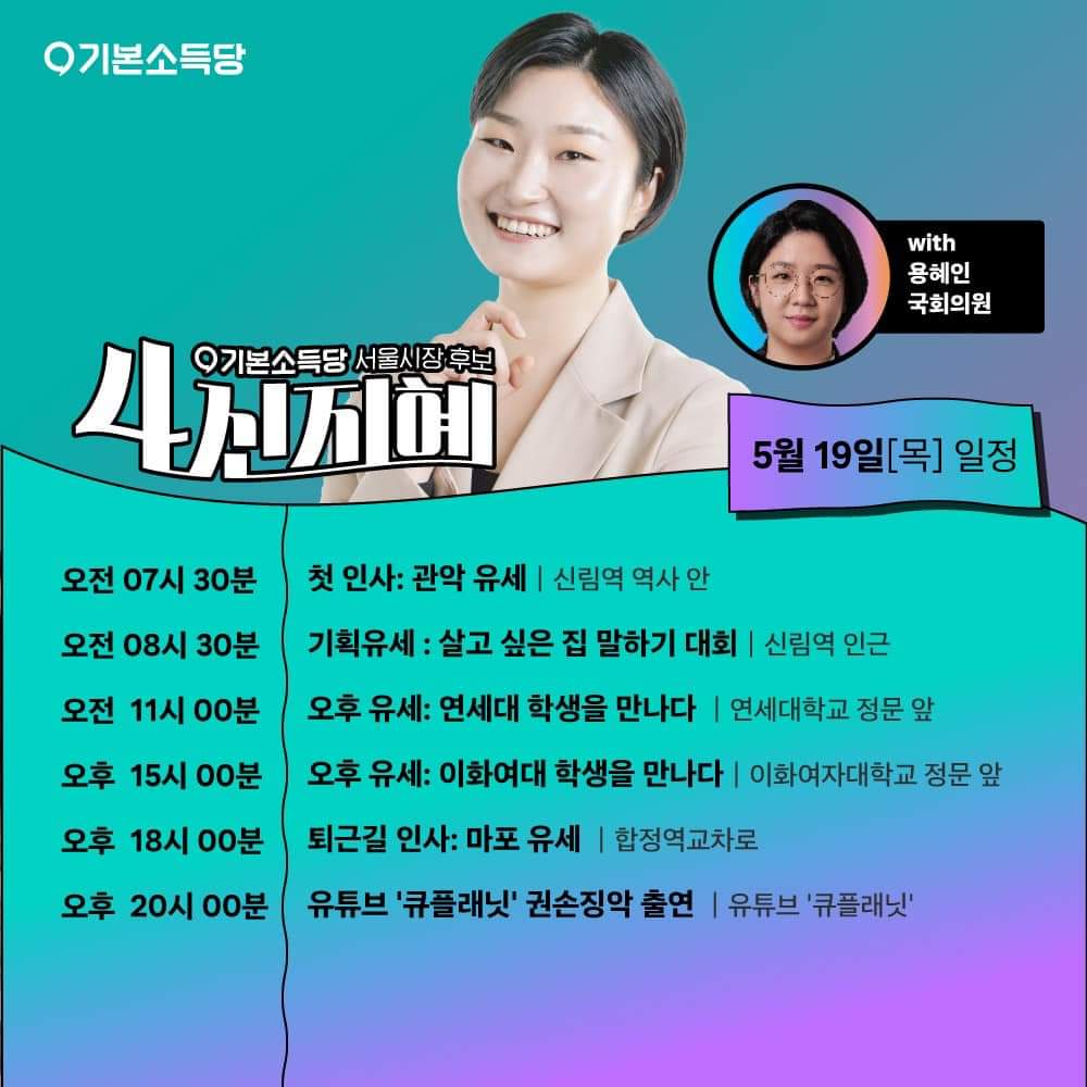 #신지혜 #기본소득당 #서울시장후보 #유세일정 #관악 #살고싶은집말하기대회 #신림역 #연세대학교 #이화여자대학교 #마포 #합정역 #큐플래닛 #권손징악 #기호4번신지혜
