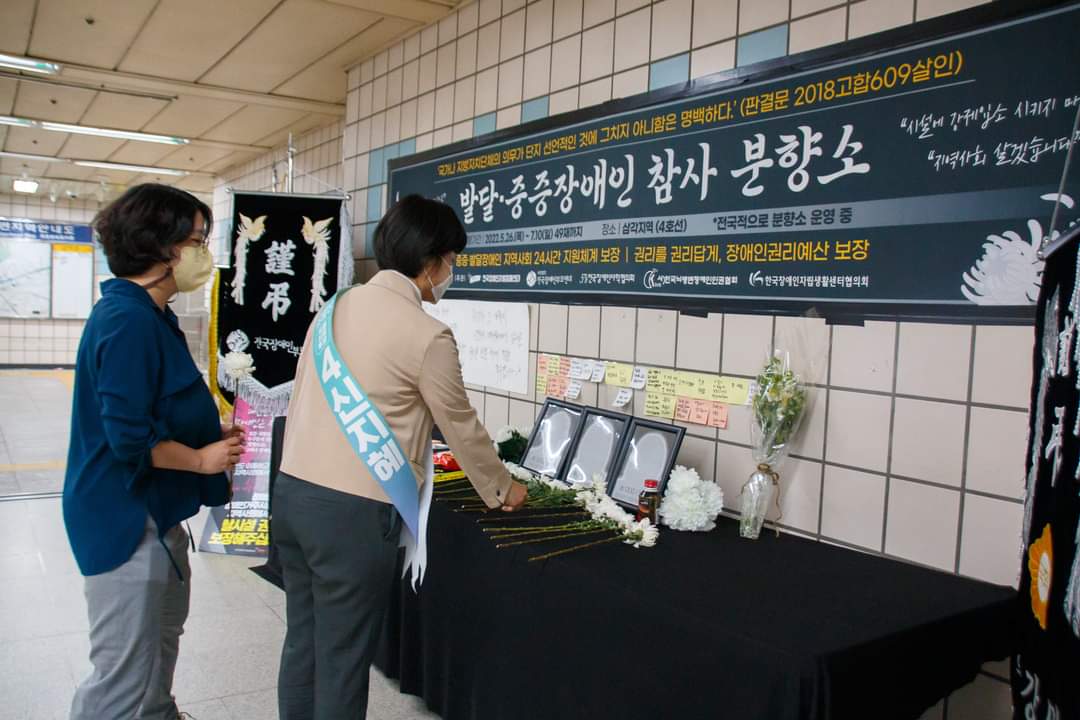 #신지혜 #기본소득당 #서울시장후보 #삼각지역 #발달장애인 #중증장애인 #분향소 #용혜인 #24시간활동보조서비스 #장애인권리 #장애인권리예산보장