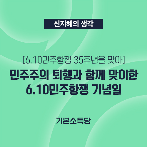 열사의 희생을 기억하며 민주주의 정신을 이어가는 것은 말이 아닌 실천으로 드러납니다. 윤석열 정부는 민주주의를 확장할 겁니까, 퇴행할 겁니까. 6.10민주항쟁 35주년을 맞아, 지금 화물연대 파업의 정부 대응하는 것에 한 점 부끄럼이 없는지 묻고 싶습니다.