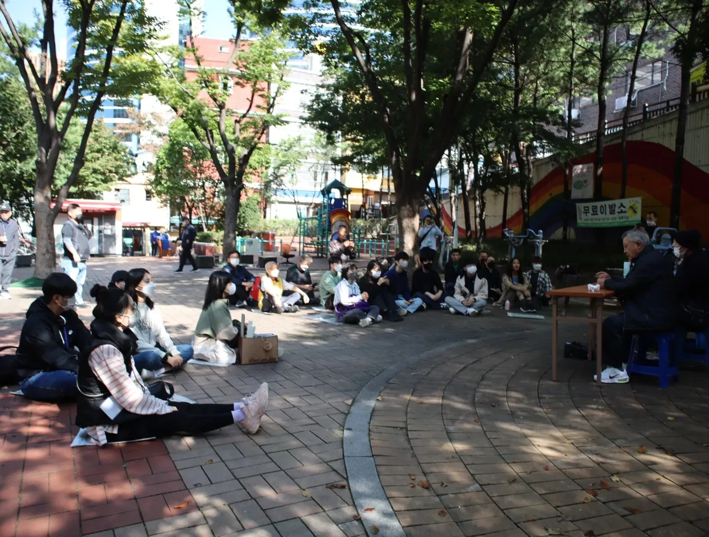 청소를 마친 뒤, 공원에서 주민들과 간담회를 했습니다. '죽기 전에 집다운 집에서 살고 싶다' 이야기하는 주민께 기후위기로 나날이 열악해지는 주거불평등의 현실을 함께 들었습니다.