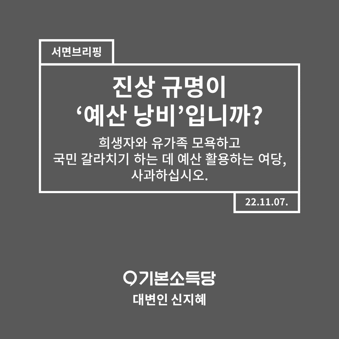 [신지혜 대변인 서면브리핑] 진상규명이 ‘예산 낭비’입니까?