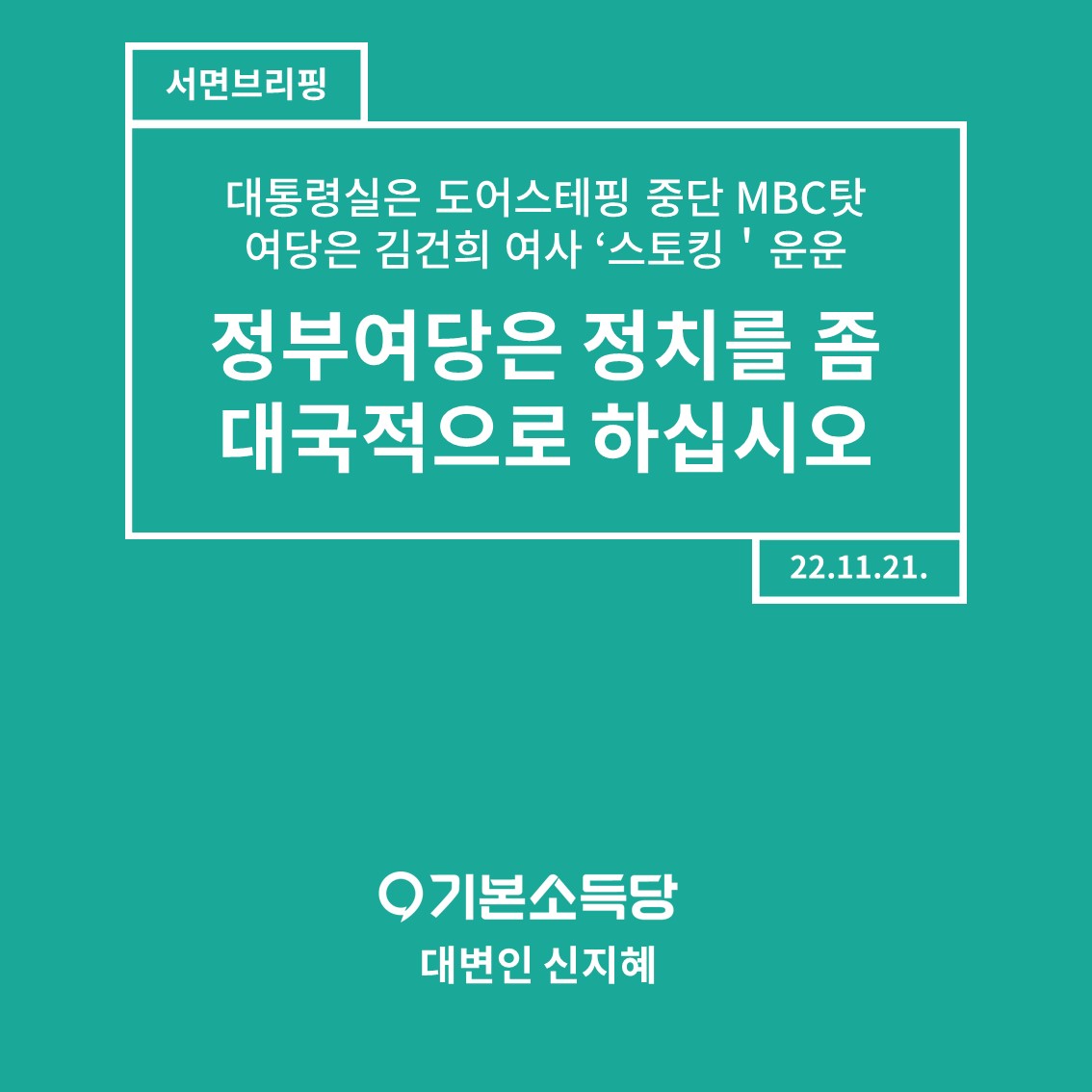 오늘 윤석열 대통령은 ‘국민 소통’을 시작한다던 도어스테핑의 잠정 중단을 선언했습니다. 이유는 ‘최근 발생한 불미스러운 사태’ 때문이랍니다. 근본적인 재발 방지 방안이 마련되지 않으면 계속 중단하겠다고 밝혔습니다. 말은 바로 합시다. 도어스테핑 할수록 국민과의 소통이 아니라 국민과의 거리만 멀어져 중단한 것이 아닙니까?