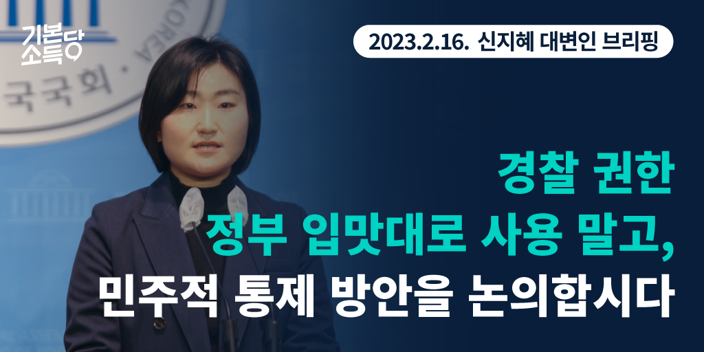 경찰국 설치 논란은 2023년 예산안 논의에서도 이어졌습니다. 기본소득당은 ‘경찰국 예산 삭감’ 같은 미봉책이 아닌 입법을 통한 민주적 통제가 필요하다는 입장을 밝힌 바 있습니다. 오늘 기본소득당 용혜인 대표는 국가경찰위원회 권한 강화를 통해 확대된 경찰 권한을 민주적 통제하는 방안인 경찰법 개정안을 대안으로 제안했습니다.