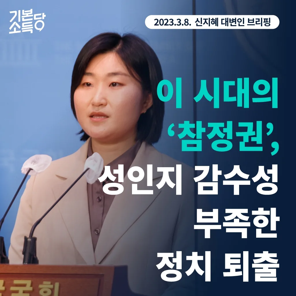 기본소득당은 성인지 감수성이 부족한 정치를 퇴출시키고, 성평등한 정치를 열어나가겠다고 약속드립니다.