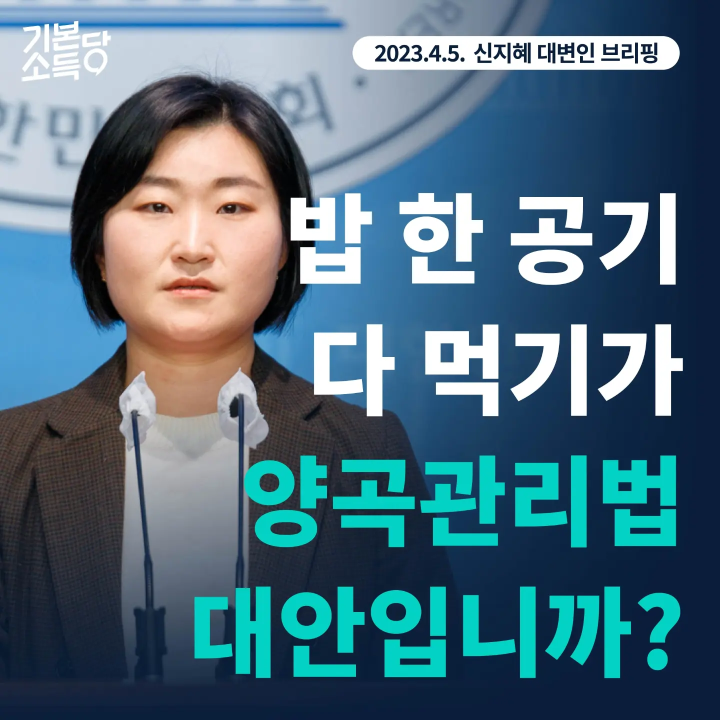 오늘 조수진 국민의힘 최고위원이 라디오에 출연해 양곡관리법 대안으로 ‘밥 한 공기 다 먹기’를 제안했습니다. 식량안보 지킬 민생법안을 대안 없이 거부하며 힘겨루기 한 것은 정부여당임을 스스로 실토하는 꼴이 됐습니다.