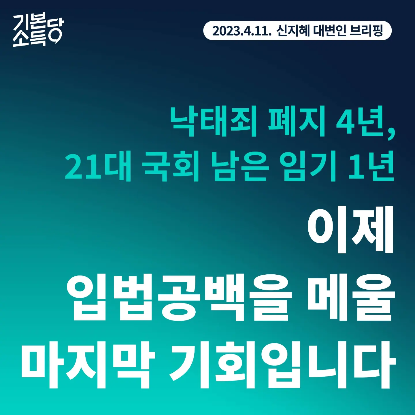 기본소득당은 안전한 임신중지를 요구하는 시민의 목소리와 함께 하며, 21대 국회가 여성의 재생산 권리 보장을 위해 힘썼던 성평등 국회로 남을 수 있도록 노력하겠습니다.
