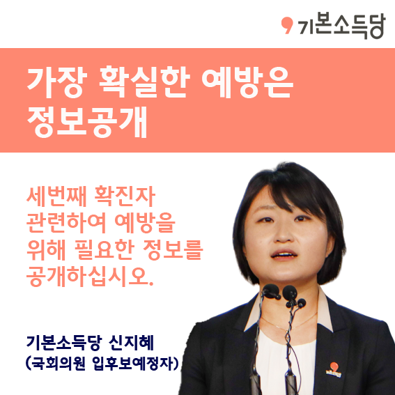 질병관리본부장은 세 번째 확진자가 동선을 자세히 설명해주었다고 하나 고양시민은 이를 전혀 알지 못합니다. 신종 코로나바이러스를 확실히 예방할 수 있는 방안은 ‘정보공개’입니다. 시민들이 불안해하지 않고, 손 씻고 마스크 쓰는 것 이상의 예방할 수 있도록 세 번째 확진자 관련 정보를 빨리 공개할 것을 요구합니다.