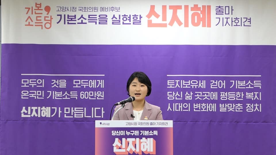 기본소득당 경기도당 상임위원장인 신지혜가 고양시(정) 국회의원 후보 출마를 결심했습니다. 고양시(갑) 지역에서 고양시(정) 선거구로 옮기게 된 이유, 고양청년 신지혜의 공약 등을 영상으로 만나보세요. 아참! 출마선언 후 기자님들의 질문과 신지혜 후보의 답변까지 풀타임으로 만나보실 수 있습니다. #기본소득당 #고양시정 #신지혜