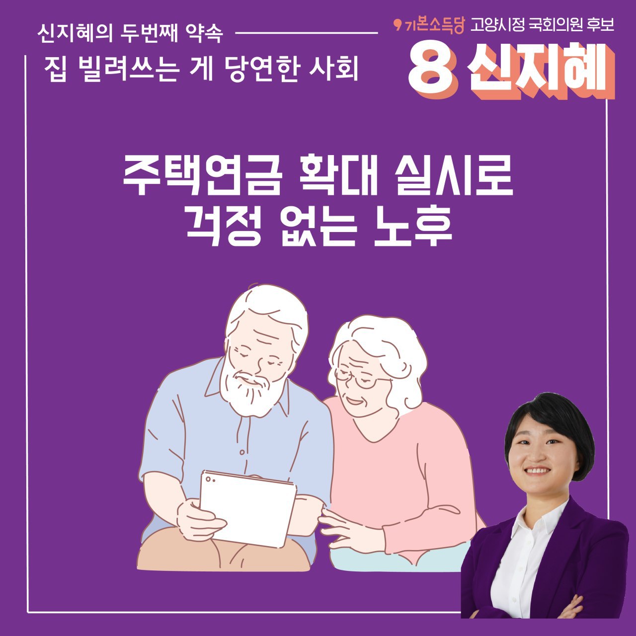 장기공공임대주택 공급을 확대하고 주택연금을 확대 실시해서 안정적인 노후와 주택공공성을 강화하겠습니다.