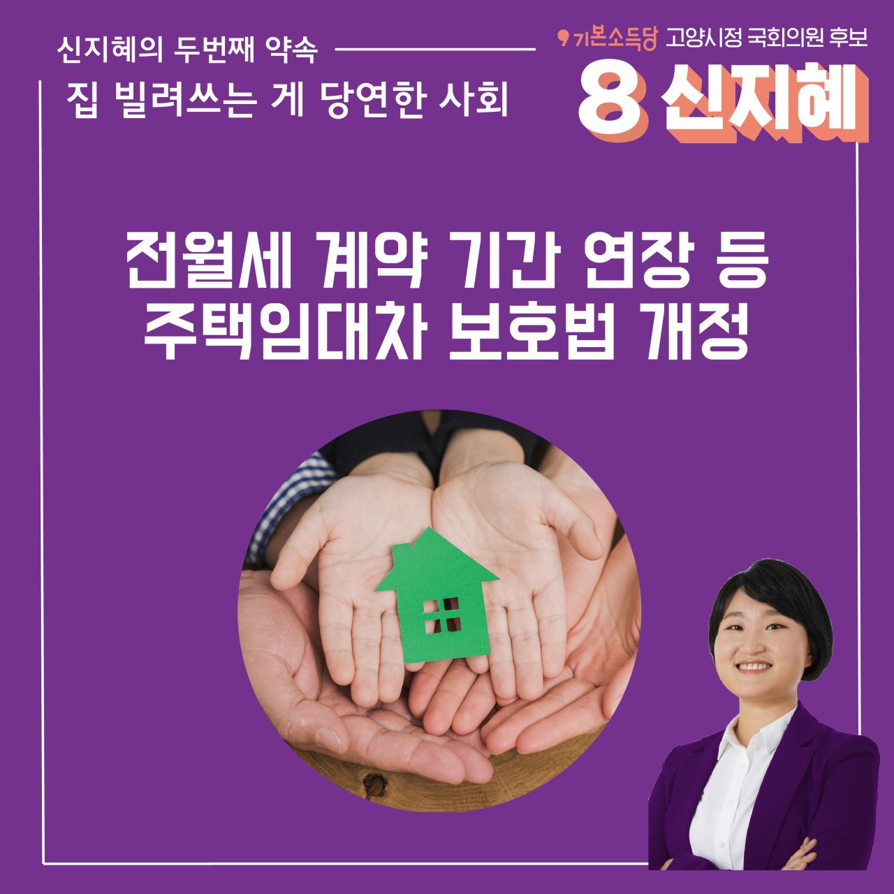 전세계약기간을 3년으로 늘리고, 최소 두 번 계약갱신청구권 갖도록 하겠습니다.