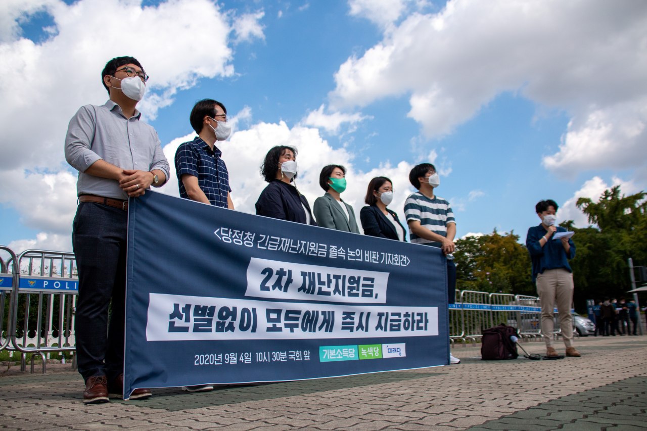 정은경 질병관리본부장 역시 방역에 있어 중요한 것은 ‘심리적 방역’이라 이야기했습니다. 모든 국민이 감내하고 있는 이 방역시스템 속에서 국민 사이 균열을 내면서 연대의식을 붕괴시키는 정책방향이어서는 안됩니다. 국민 모두 이 위기를 잘 극복할 수 있도록 선별이 아닌 전 국민에게 재난지원금 지급할 것을 촉구합니다.