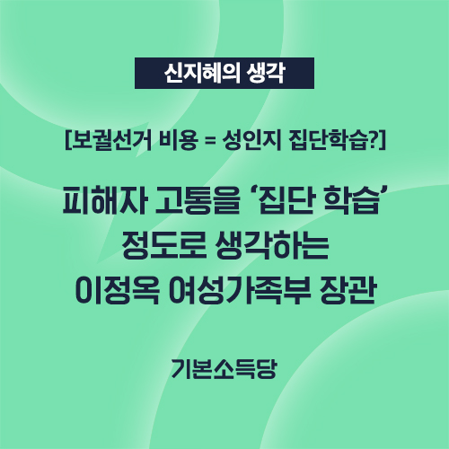 피해자는 일상조차 빼앗긴 채 진상규명과 재발 방지를 위한 대책 마련, 진정성 있는 사과를 기다리고 있습니다. 보궐선거를 대선 승리로 가는 정치 이벤트로 취급하는 정치권의 행보에 피해자는 계속 큰 고통을 받고 있습니다. 뻔히 보이는 피해를 고려하지 않은 이정옥 장관의 발언은 장관 본인이야말로 성인지 학습이 가장 필요한 사람임을 드러낸 것입니다.