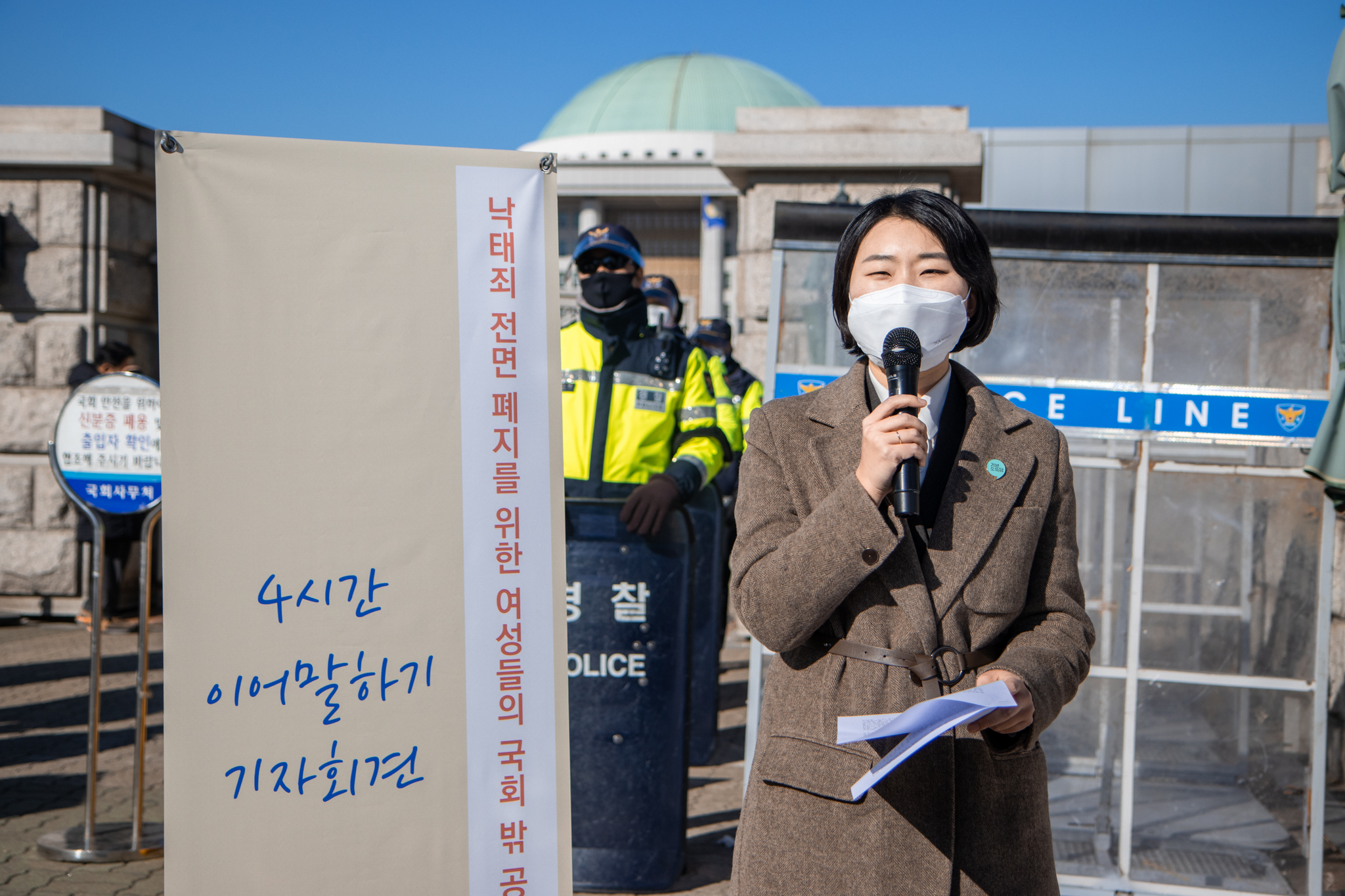따뜻한 실내에서 공청회가 진행되고 있는 그 시간, ‘낙태는 살인이다’라는 피켓 앞에서, '순결'을 강요받아왔던 여성들의 경험들이 생생한 목소리로 터져 나오고 있었습니다. 여성들의 목소리를 모른척하고 있는 국회 앞에서 많은 여성들과 함께 ‘나의 몸은 나의 것’이라고 외쳤습니다. 여성인권의 시간을 거꾸로 돌리려는 정부와 여성혐오 세력 앞에서, 우리들이 함께 싸우고 있는 것은 단순히 ‘낙태죄’ 하나만은 아닐 것입니다. 여성의 몸을 출산의 도구로 바라보고 통제하려는 가부장 패러다임을 바꾸는 과정일 것입니다.