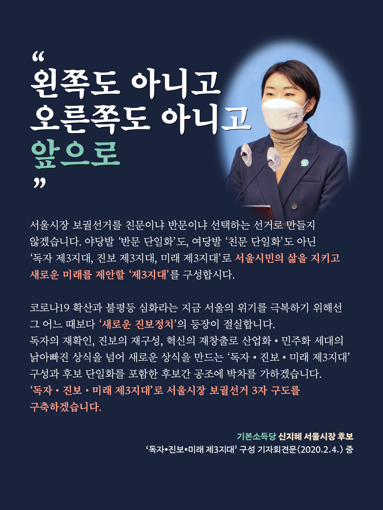 ‘독자‧진보‧미래 제3지대’로 서울시장 보궐선거 3자 구도를 구축하겠습니다.
