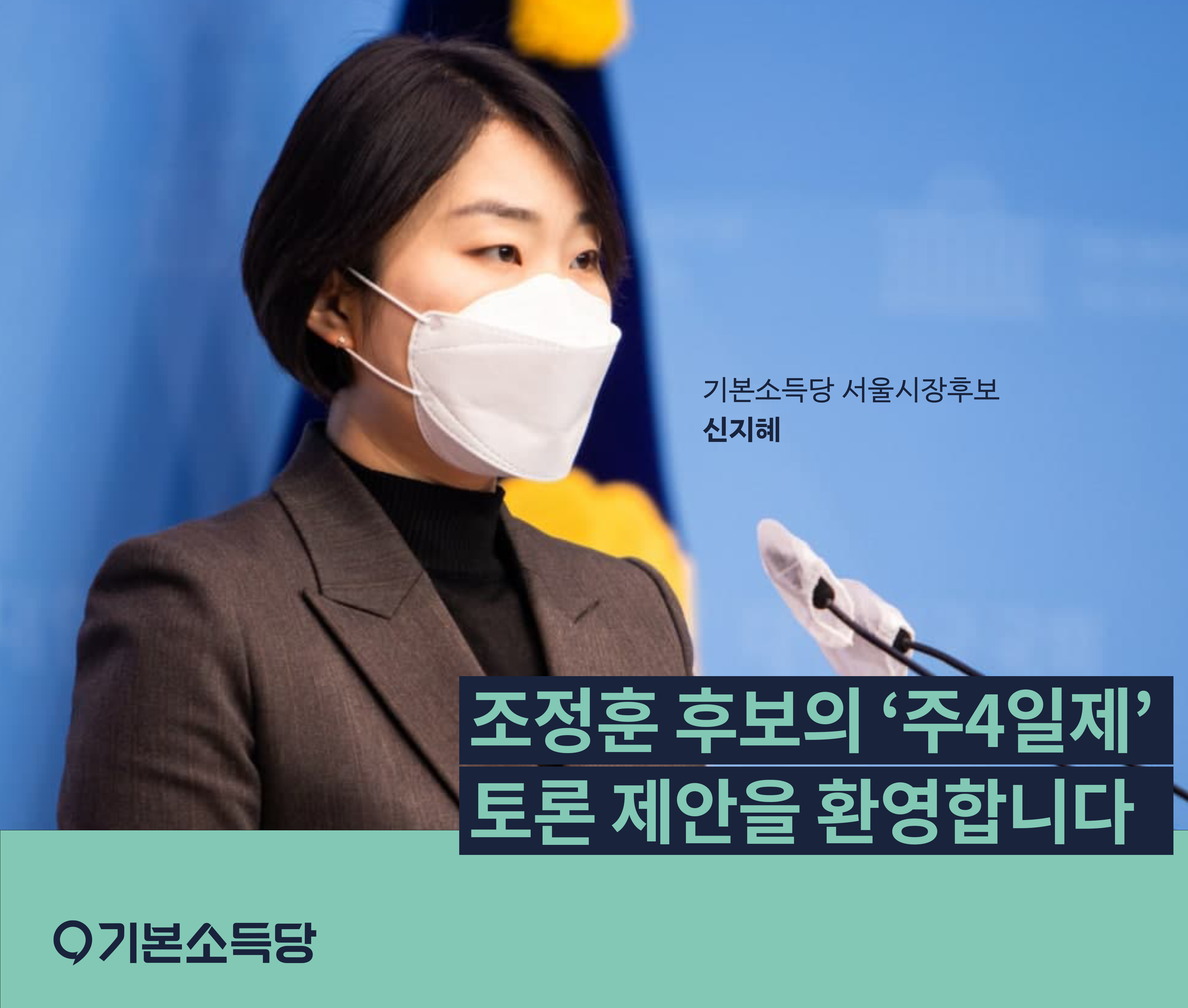 서울시장 후보로서 조정훈 후보께서 제안하신 ‘정책 토론’에 공감한다고 말씀드립니다. 다만 주4일제 도입뿐만 아니라, ‘서울형 기본소득’ 도입과 함께 획기적인 노동시간 단축 방안을 함께 논의할 수 있어야 합니다. 여야 후보와 진보 후보가 함께 머리를 맞대고 토론해야만 진정으로 유의미한 정책 토론이 되어야 할 것입니다. 그 발판을 먼저 열어주신 것이라 생각합니다.