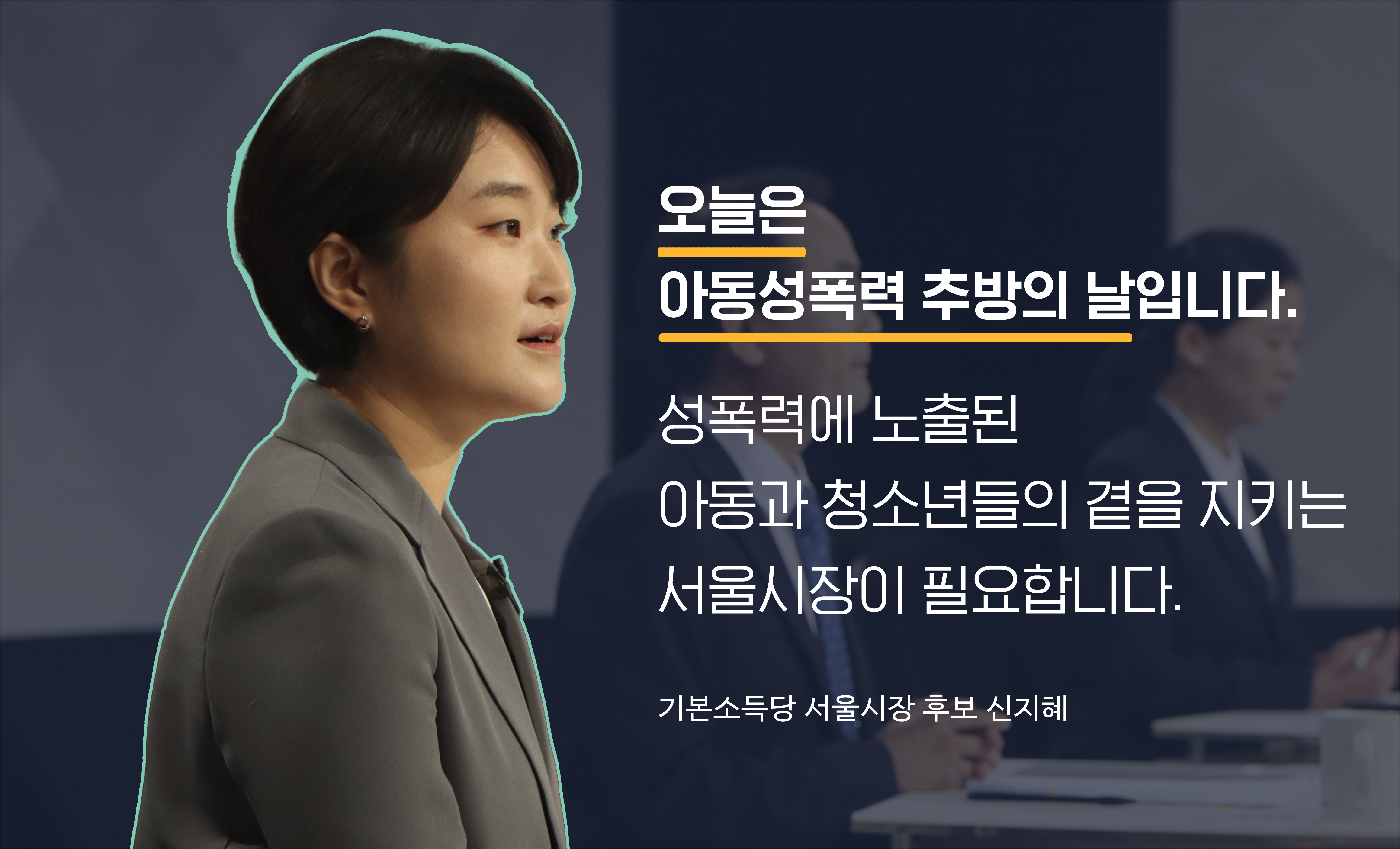 성폭력에 노출된 아동과 청소년들의 곁을 지키는 서울시장이 필요합니다. 어떤 상황에서라도 당신의 편이 되어주는 정치, 누구보다 나 자신을 존중할 수 있는 사회를 만들어 아동성폭력을 추방하는데 최선을 다하겠습니다.