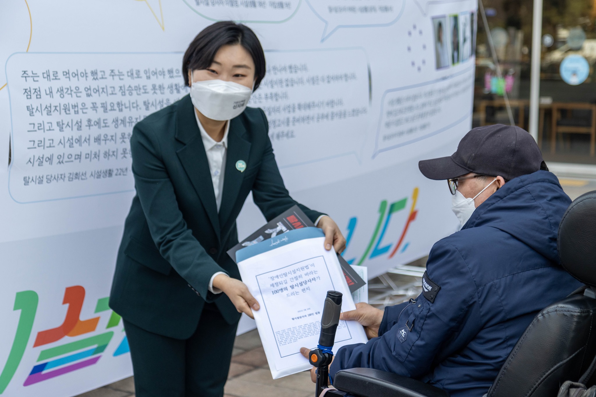 장애인 탈시설 지원은 사회안전망 강화라는 또 다른 과제 역시 실현할 수 있습니다. 탈시설을 지원하기 위해 활동지원사를 비롯해 많은 일자리를 만들 수 있습니다. 모두를 위한 공공주거 보장해야 합니다. 국민 모두가 삶의 상황이 크게 달라지더라도 보이지 않는 먼 곳에 치워지는 것이 아니라 든든한 사회안전망 덕분에 지역사회에서 함께 살아갈 수 있다는 신뢰와 희망 역시 갖게 할 것입니다.