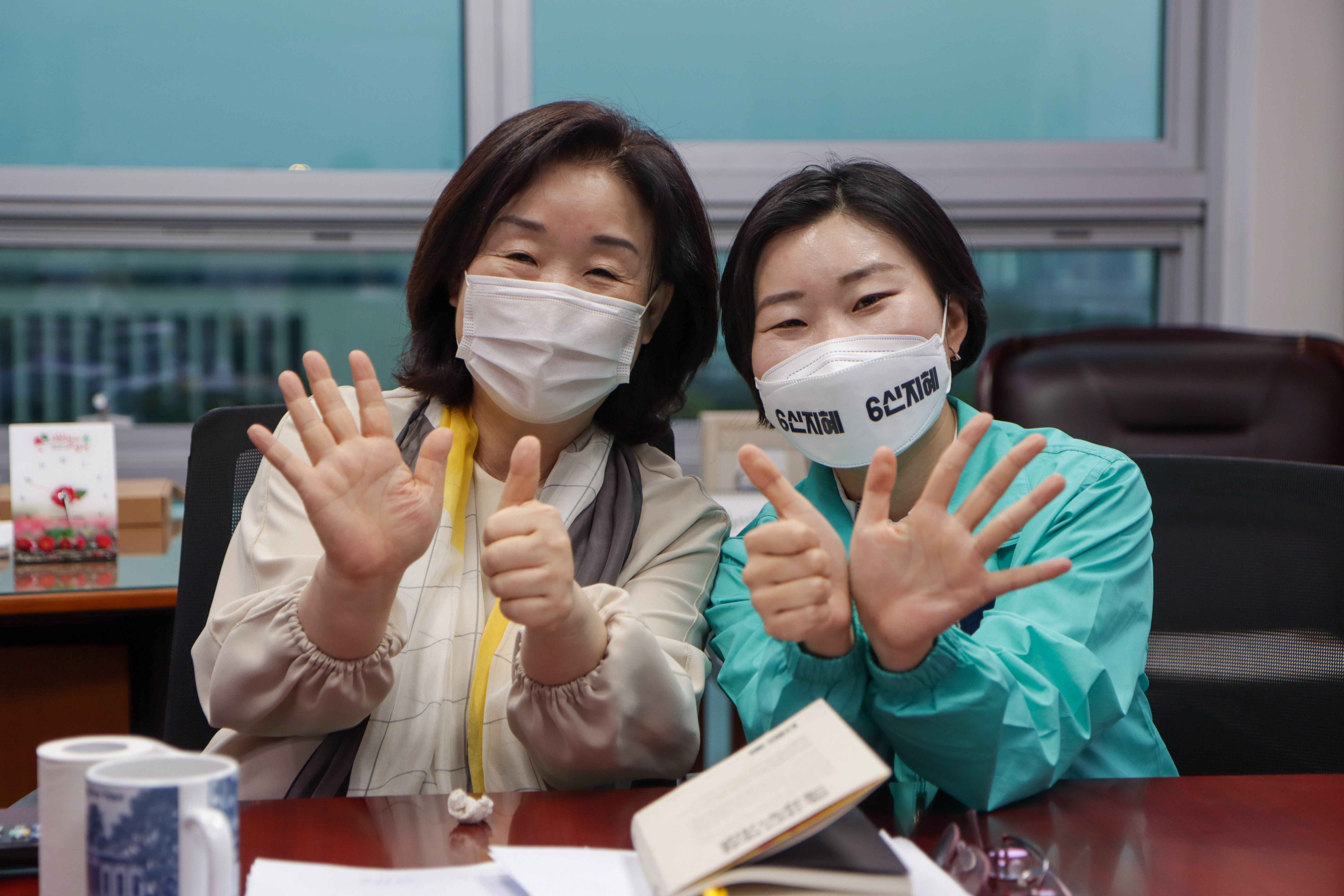 아침부터 현수막이 찢기고, 벽보가 훼손되었다는 소식을 전해듣고, 마음이 무너진 날이었습니다. 모두 함께 공존하기 위한 페미니즘을 외쳤다는 이유로 현수막과 벽보가 훼손되는 서울은 모두를 위협하는 것과 다름없기 때문입니다. 위협에 맞서는 것마저 감내해야 하는 상황에서 오늘 저녁에 성사된 심상정 의원님과의 만남은 청년 여성 정치인 신지혜에게 큰 용기가 되었습니다.