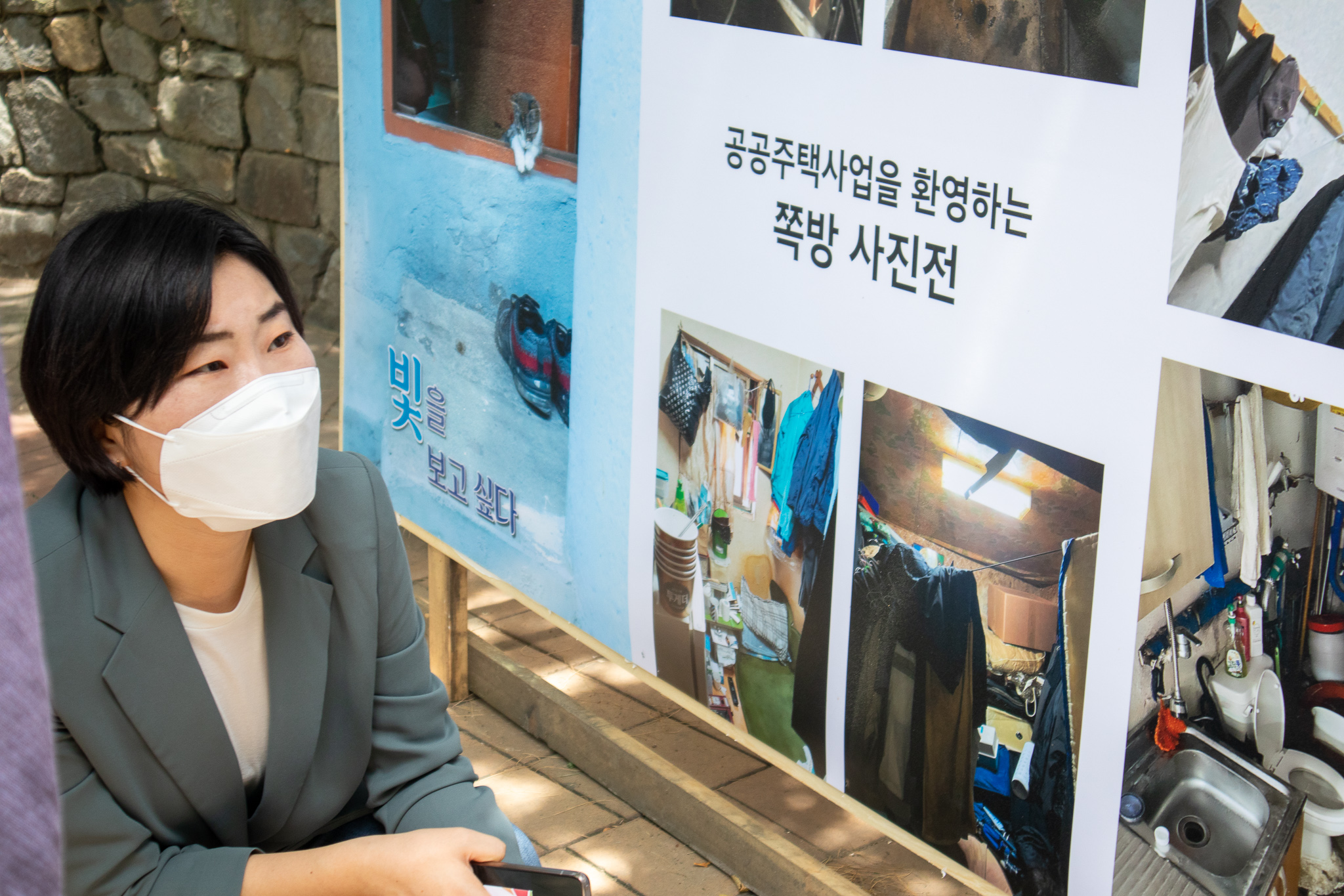 지난 서울시장선거를 준비하며 만났던 동자동쪽방촌 주민분들의 목소리를 다시 들으러 쪽방촌을 방문했습니다. 반갑게 맞이해주신 주민분들과 함께 쪽방촌에서 열리고 있었던 쪽방사진전, <빛을 보고싶다>를 둘러보며 주민분들의 목소리를 들었습니다. 쪽방촌주민분들께서 사진들을 설명해주시며 쪽방에서의 삶에 대해 이야기해주셨습니다. 주민분들이 직접 자신의 삶터를 찍은 사진에는 대한민국에서 가장 비싼 임대료를 내면서도 가장 열악한 환경에서 살아왔던 쪽방촌의 현실이 고스란히 담겨져 있었습니다.