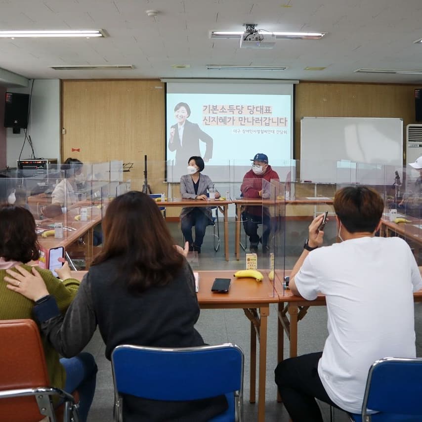 기본소득당에 대한 간단한 소개 이후 기본소득당에 궁금한 점과 바라는 점에 대한 이야기들을 나누었습니다. 또한 능력주의와 공정담론을 이야기하며 혐오와 배제를 방관하고 있는 기성정치의 문제를 지적하며 기본소득당과 진보정치가 더 많은 국민들을 설득해낼 수 있기를 바란다는 말씀도 전해주셨습니다. 오늘 나눈 이야기를 바탕으로 기본소득 정치와 장애인권운동이 만나 당신이 누구든 존엄할 수 있는 사회를 만들 수 있도록 최선을 다하겠습니다.