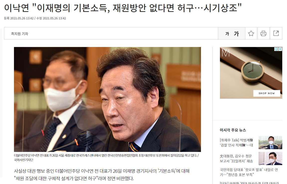 어제 열린 한국신문방송편집인협회 초청 대선후보 토론회에서 이낙연 의원이 기본소득에 대해 언급했습니다. 요즘 어떤 발언을 하실 때마다 기본소득 언급을 하시는 것을 잘 알고 있습니다. 아무래도 기본소득에 대한 국민의 지지가 높아지고 있고, 이번 대선에서 기본소득 역시 주요 의제일 수밖에 없기 때문일 것입니다.