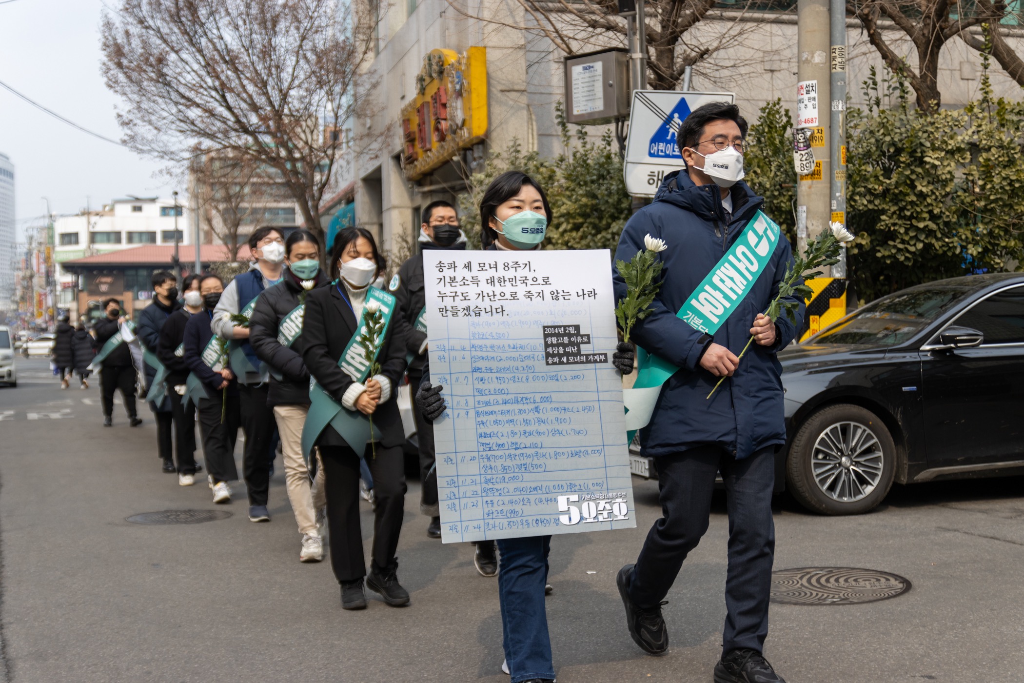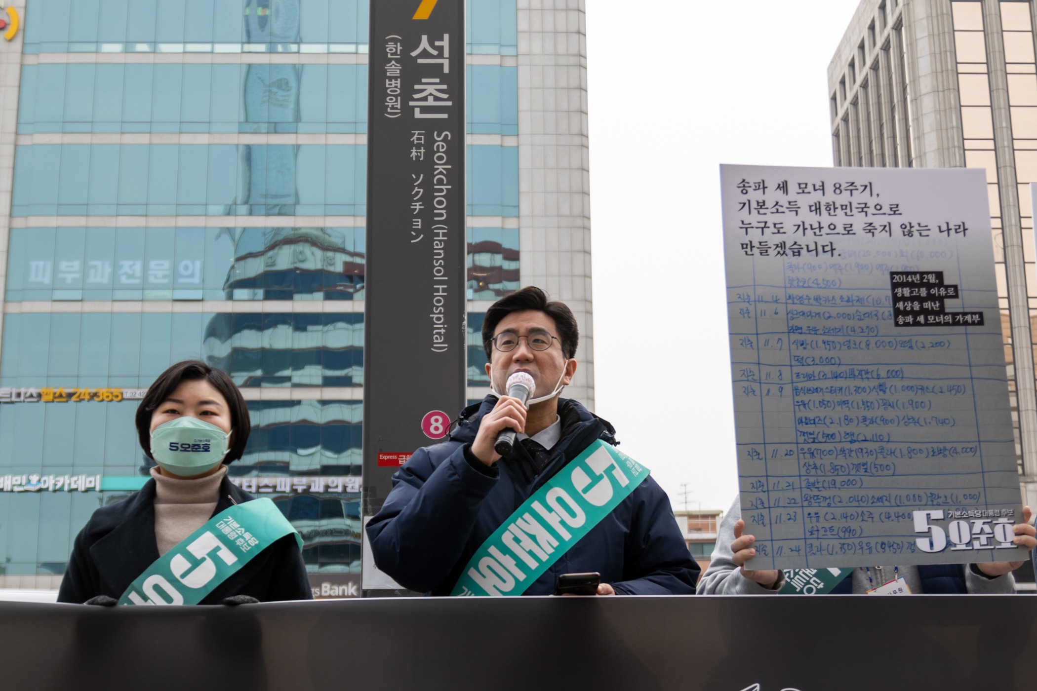 비극을 맞은지 8년이 지나도 대한민국의 안전망을 여전히 불안합니다. 달라진 게 없습니다. 대선 후보의 공약도 송파세모녀를 잊어버린 것만 같습니다. 오늘 오준호 후보와 석촌역-잠실역-고속터미널역에서 ‘소득보장의 날’을 외쳤습니다.