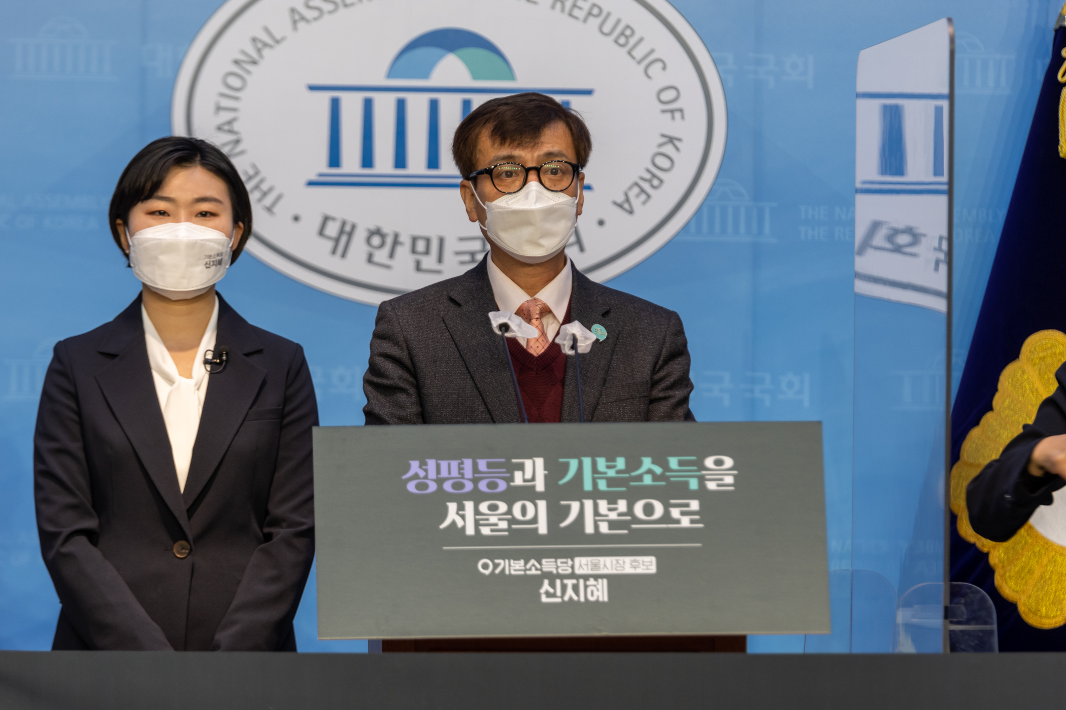 오늘 서울시의회 비례대표 기본소득당 후보로 선출된 페미니스트 활동가 윤김진서님과 여행사를 운영하는 소상공인 구부회님과 함께 출마 기자회견을 했습니다.